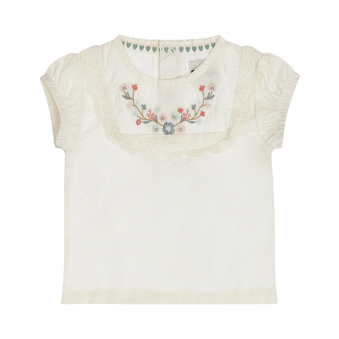 Dirkje Mädchen Bluse cremefarben Baumwolle bestickte Blume