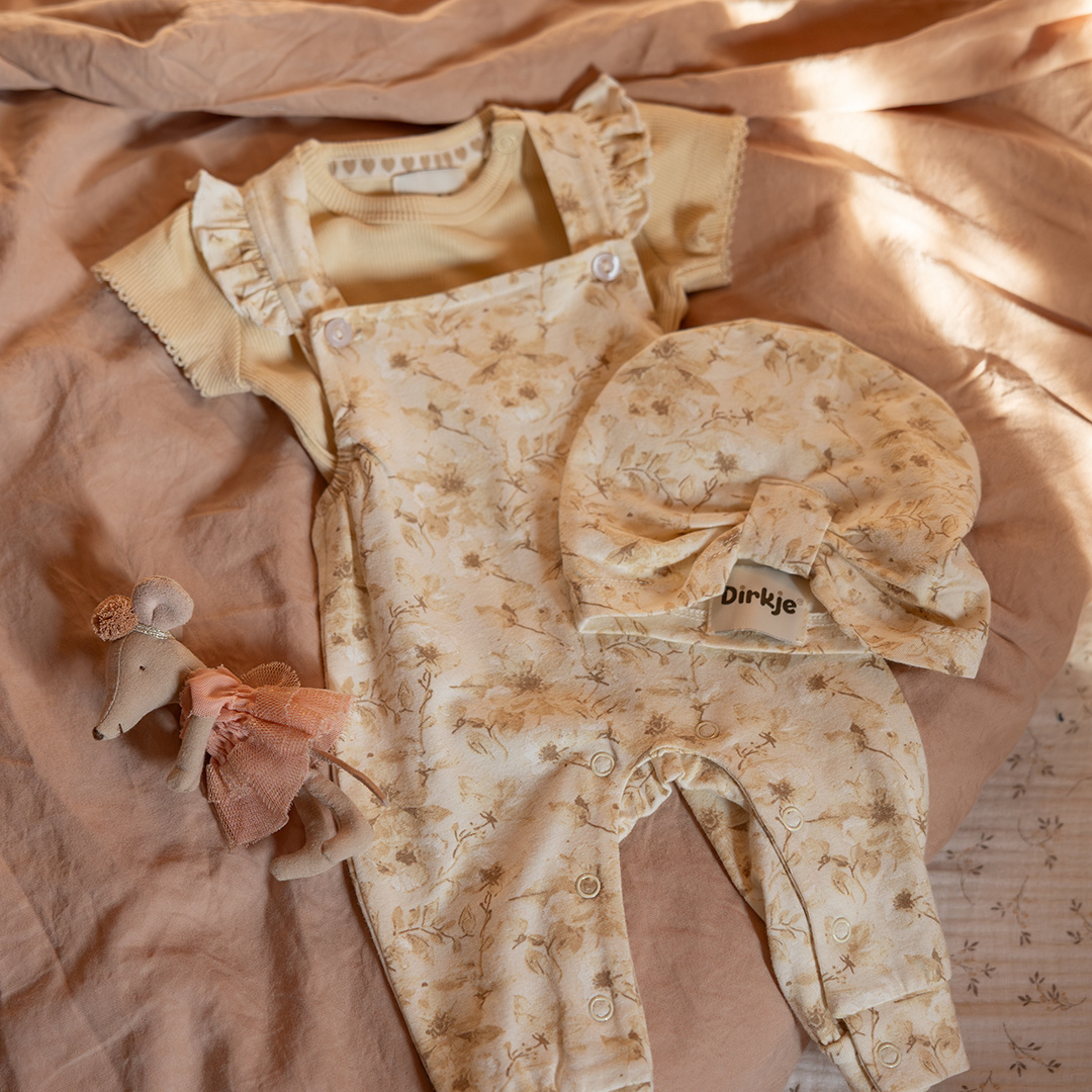 In the Dirkje collection In the collection Dirkje baby clothes you will find several baby jumpsuits for boys, girls, but also unisex suits. Ideal when you are looking for a baby shower gift. The baby suits in our range are made of soft, organic cotton. Your little one will be able to freely move around in our babysuits, without the fabric getting in the way or cause skin irritation.
