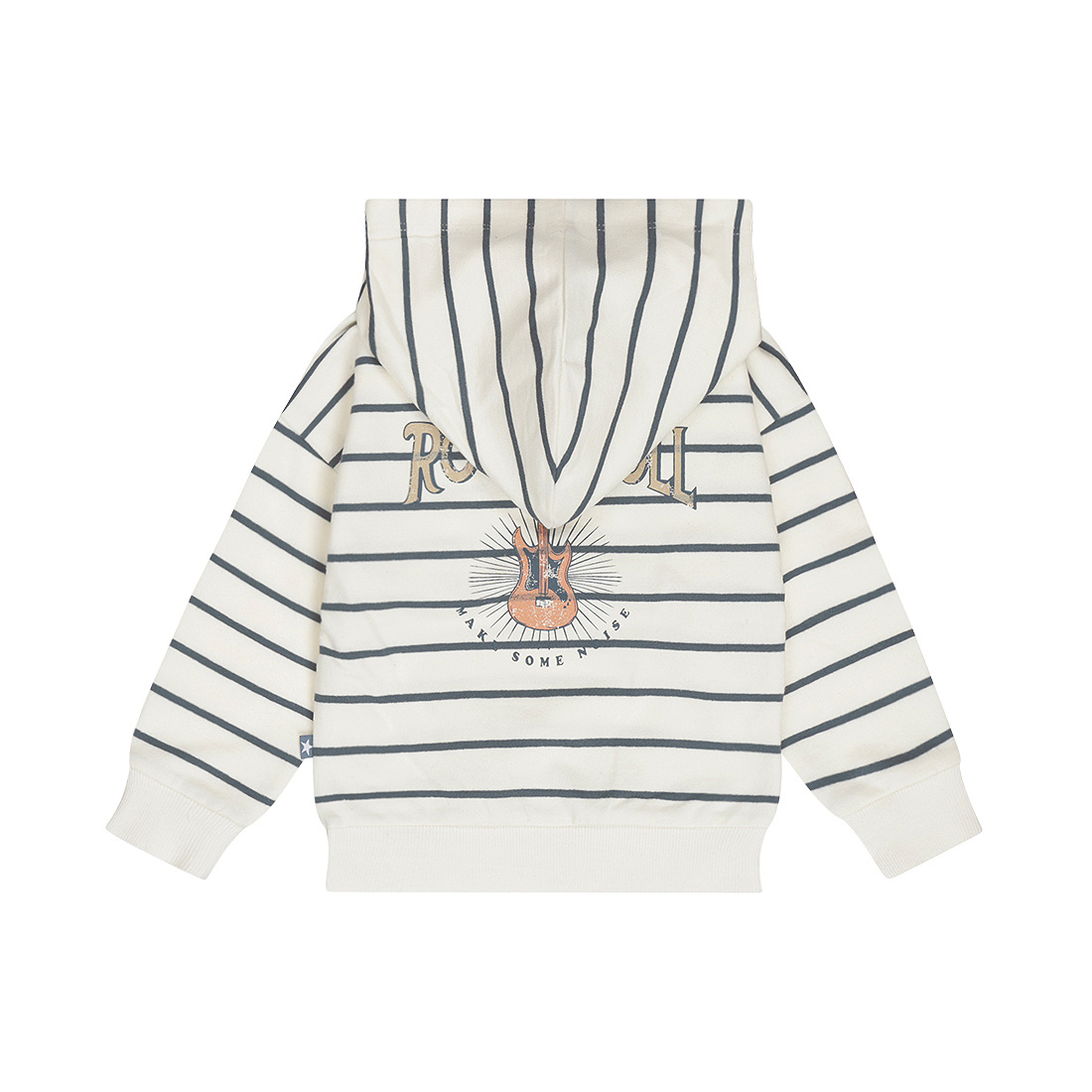 Cool and comfy: this Dirkje boys' hoodie in off-white with steel blue stripes is a great everyday essential. The soft, stretchy cotton blend is incredibly comfortable, and the striped hoodie moves easily with you during play and exploration. The hood and ribbed cuffs keep your little one nice and warm, and the buttons and print on the back add that extra touch.