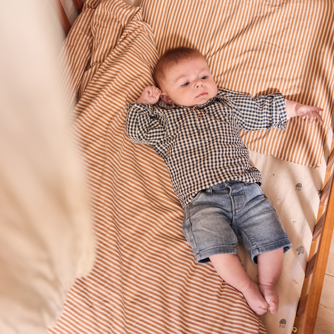 The Dirkje blue denim shorts are a stylish essential for any summer day. The stretch denim fabric feels soft and offers plenty of freedom of movement. Thanks to the adjustable waist, the shorts always fit perfectly, and up to size 104, the waistband features a sliding knot for extra comfort. These boys' denim shorts with cuffs add a cool edge to any outfit.