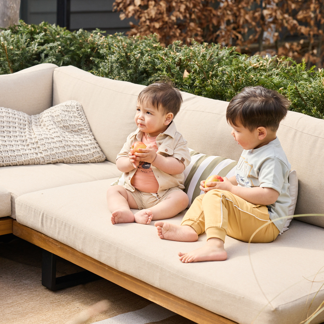 Summer-ready and super cool: this Dirkje boys' set with a shirt, shorts, and blouse makes every day a little more fun. The airy sand-colored overshirt-blouse can be worn open or closed, and the sand-colored cargo shorts with pockets give the outfit a bit more edge. The soft orange printed T-shirt is available in sizes up to 86 and features snaps on the shoulders. A complete boys' summer set with a blouse, shirt, and cargo shorts that you can throw on in no time.