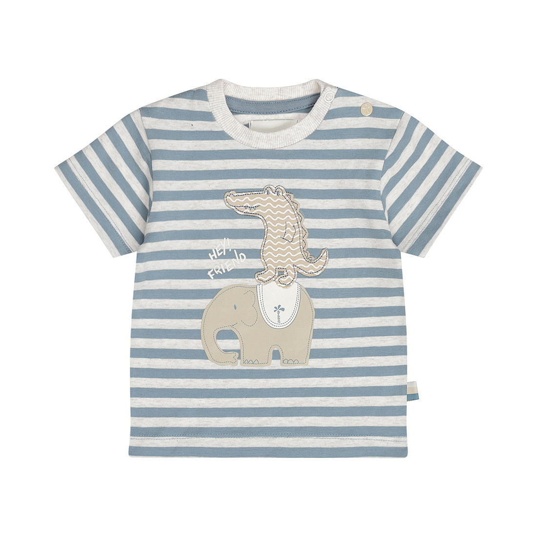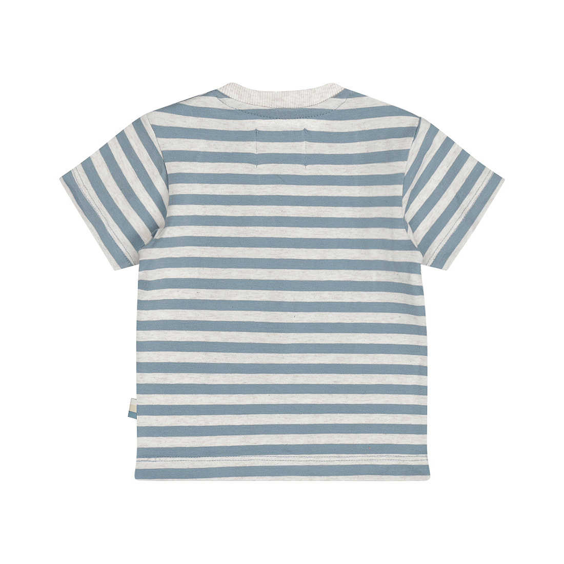 A fresh stripe and a fun animal print make the Dirkje blue with a heathered off-white T-shirt perfect for everyday wear. The stretch cotton blend is comfortable to wear and gives your little one plenty of freedom of movement. This striped boys' short-sleeved shirt is available in sizes up to EU 86 and features snaps on the shoulders for easy changing.