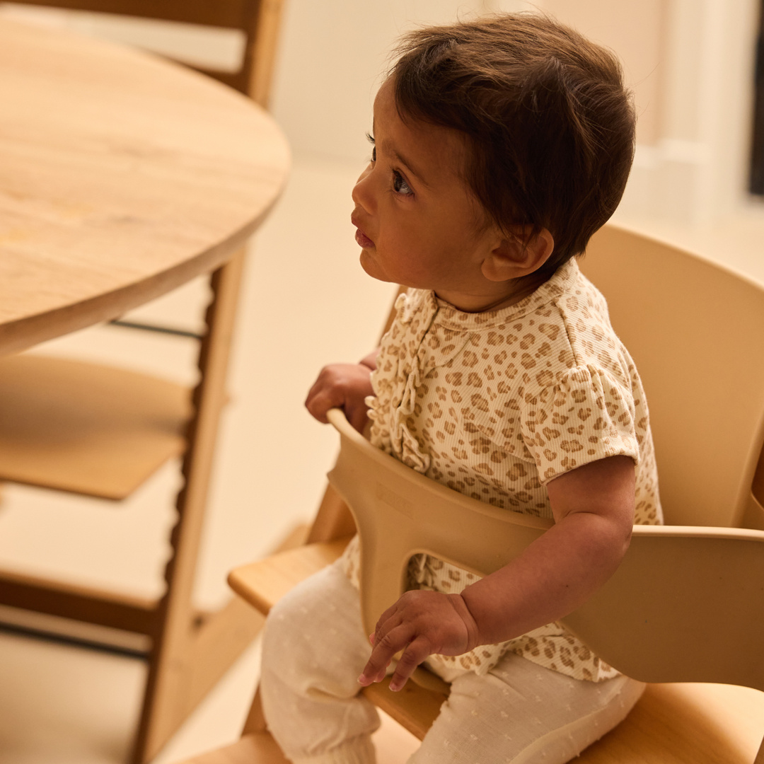 This off-white Dirkje T-shirt features a cool leopard print and cute details. This girls' shirt is made of stretch cotton and has a lovely textured fabric. Short puff sleeves, snaps at the front with a ruffled edge, and a playful ruffled stripe at the hem complete the look. A breezy piece for every day.
