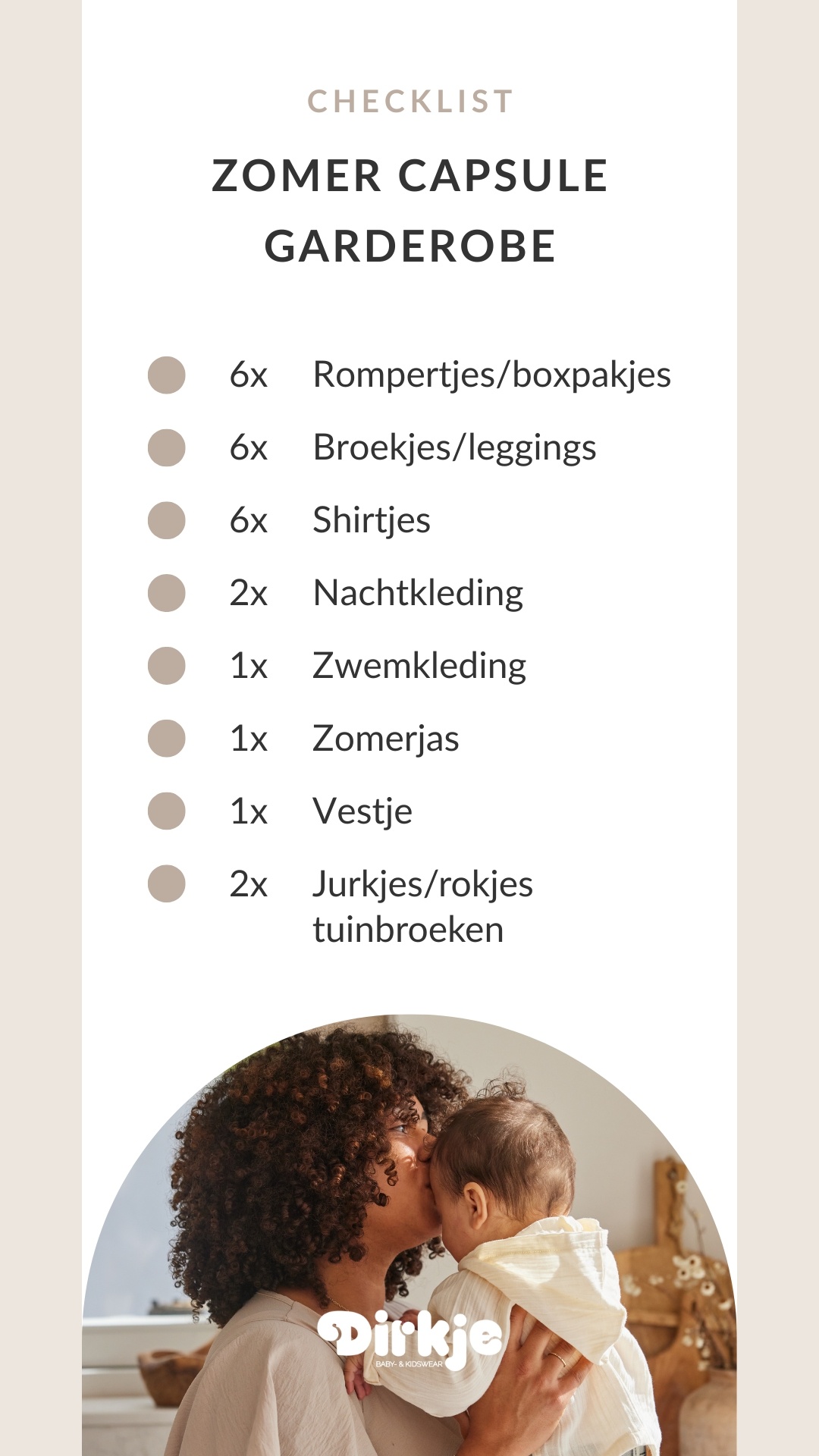 Wil je zeker weten dat je niets mist in de zomergarderobe van je baby? We hebben alle essentiële items voor je op een rij gezet in een handige checklist. Zo zie je in één oogopslag wat je al hebt en wat je nog kunt aanvullen. Download de zomer capsule garderobe checklist en stel met gemak een complete en comfortabele zomergarderobe samen voor je kleintje.