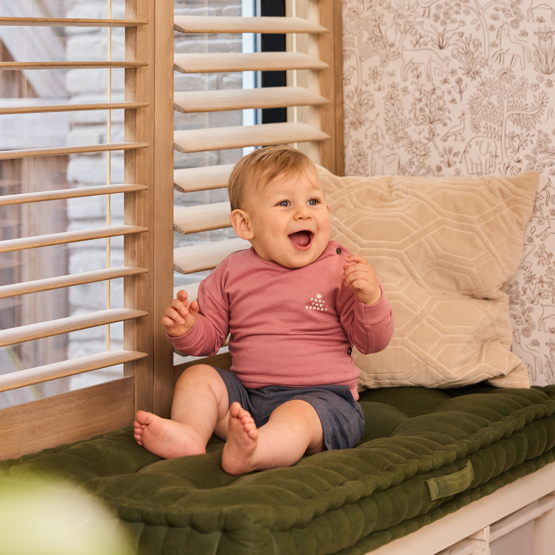 Met deze Dirkje sweater in oudroze geef je elke outfit van je kleintje een warme, zachte touch. De kwaliteit van katoen met stretch draagt prettig en voelt comfortabel tijdens spelen, kruipen en dutten. Op de achterkant zit een opvallende sunset print die meteen in het oog springt. De maten t/m 86 zijn voorzien van drukkers op de schouders, ideaal voor snel omkleden. Deze jongens trui is een fijne keuze voor het najaar of een frisse lentedag.