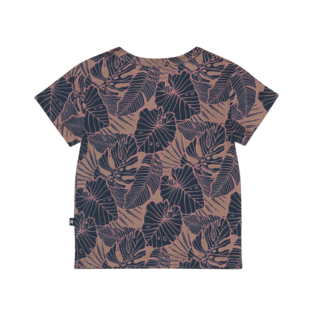 Het Dirkje T-shirt in donkerblauw met oudroze tropical print is een fijne zomertopper voor jouw mini. Door de katoen met stretch zit het shirt comfortabel en blijft het mooi. De opvallende print zorgt voor een speelse uitstraling en maakt het extra leuk voor zonnige dagen. De maatjes t/m 86 zijn voorzien van drukkers op de schouders, waardoor aan- en uitkleden snel gaat. Dit jongens korte mouwen shirt past perfect bij een short, jeans of joggingbroek.