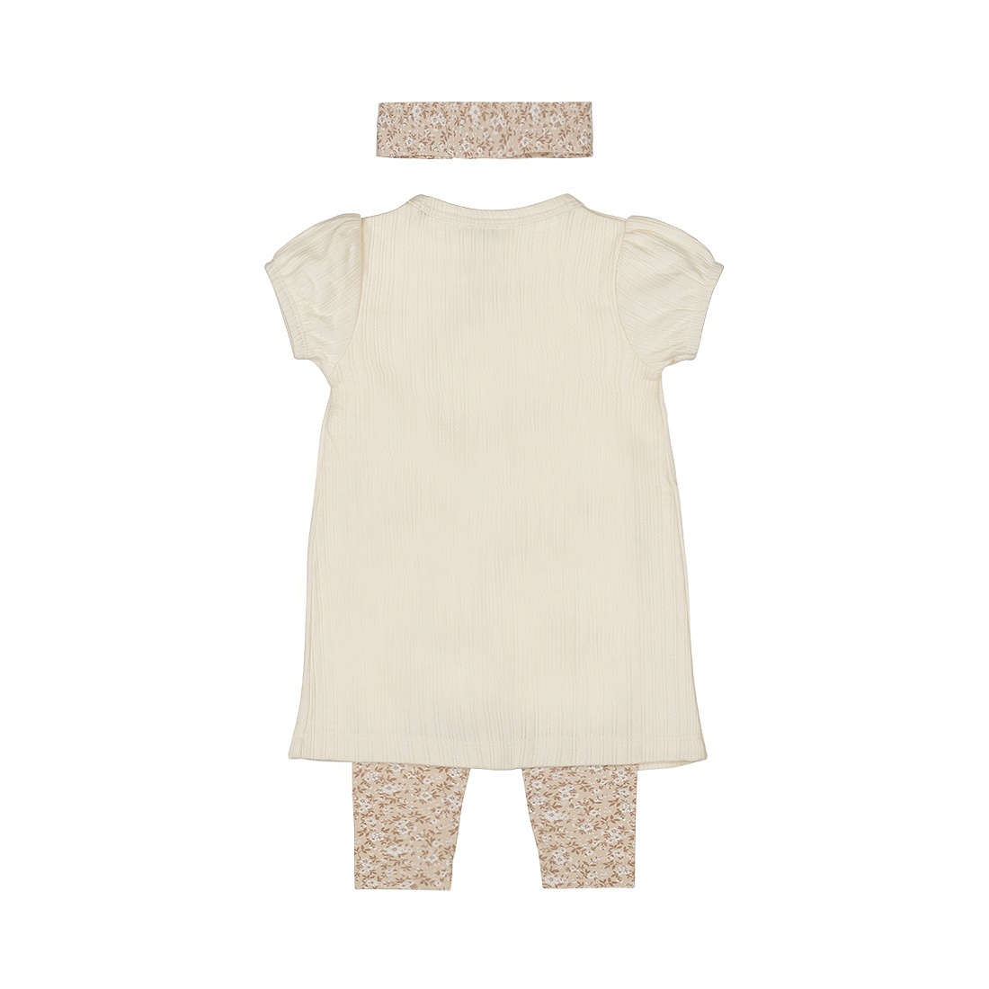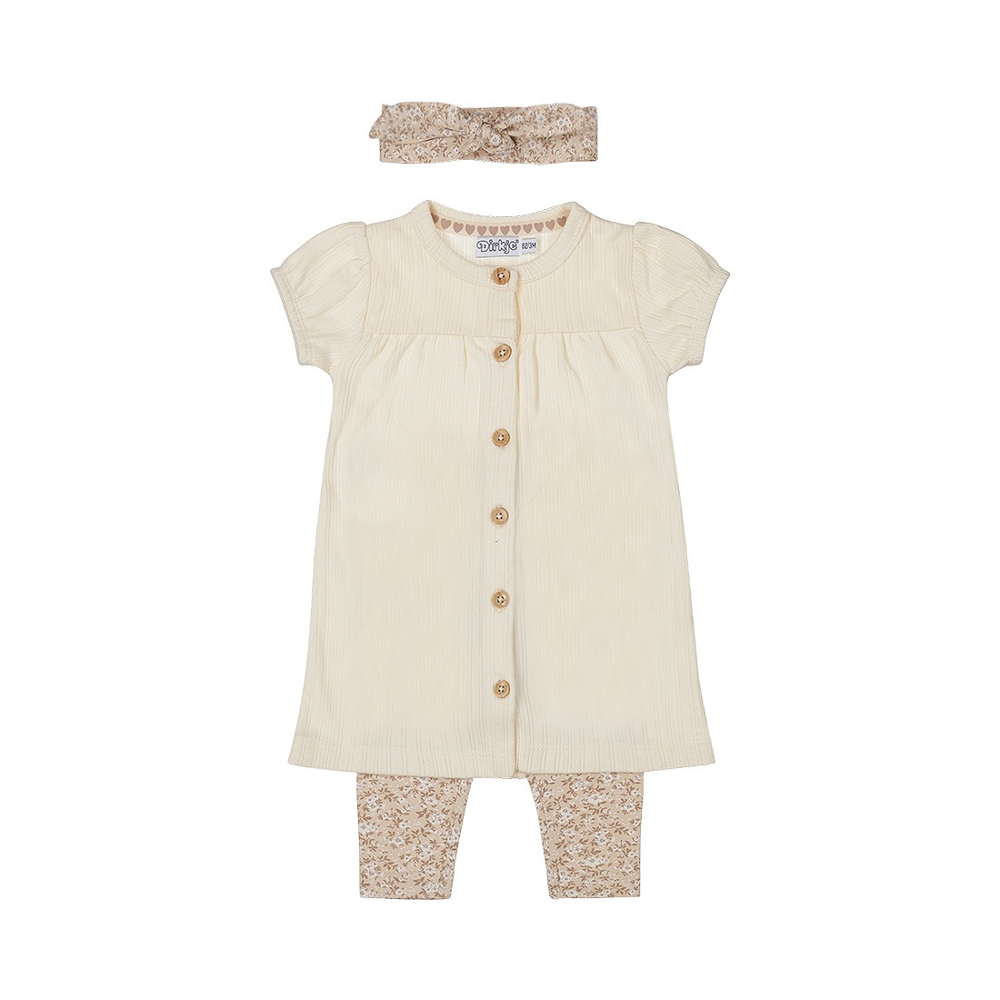 Dirkje meisjes baby set jurk legging haarband beige knoopjes
