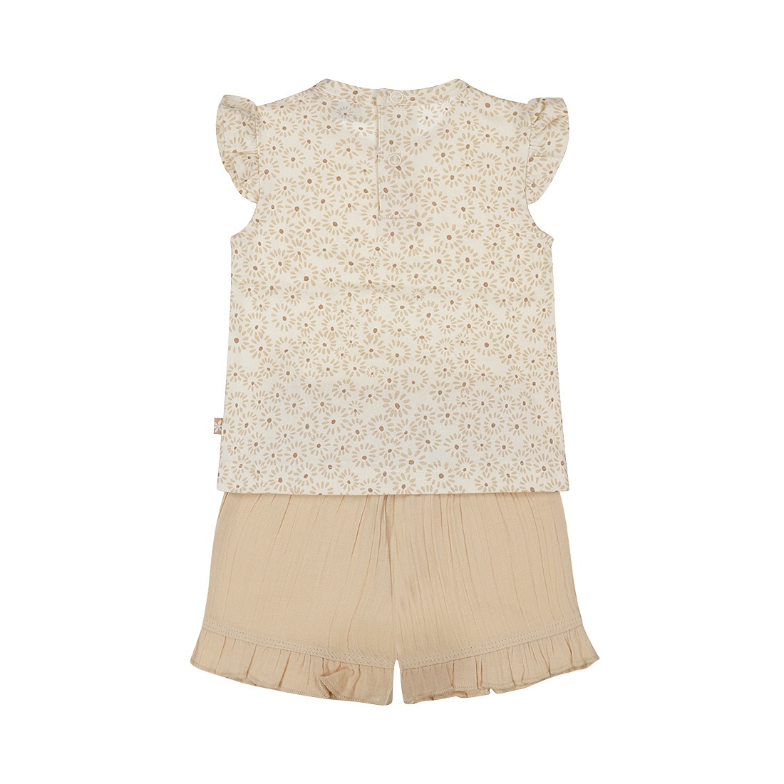 Dirkje meisjes baby set mouwloze top shorts beige bloem