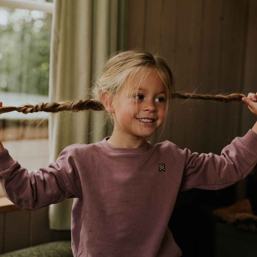 Koko Noko meisjes sweater oudroze die altijd kan. Biologisch katoen met stretch zit soepel en luchtig en de dropped shoulder geeft een losse, stoere fit. Combineer met wide leg jogger of jeans.